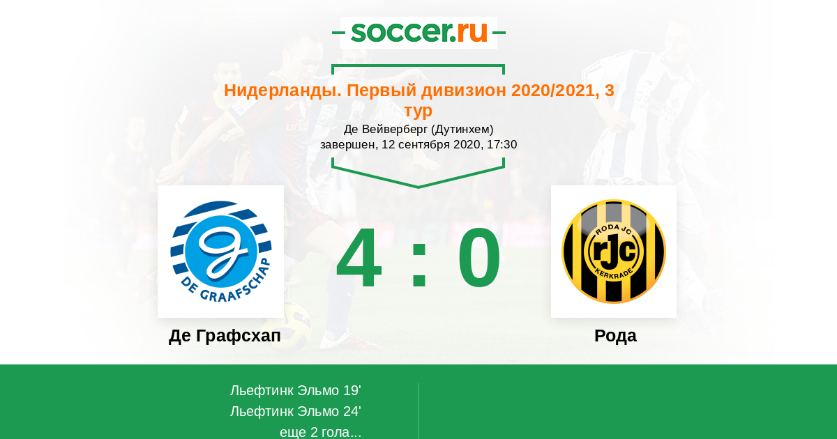 Протокол матча Де Графсхап против Рода