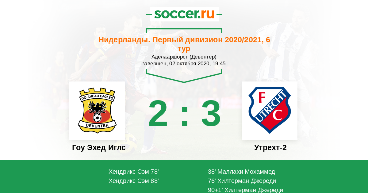 Протокол матча Гоу Эхед Иглс против Утрехт-2