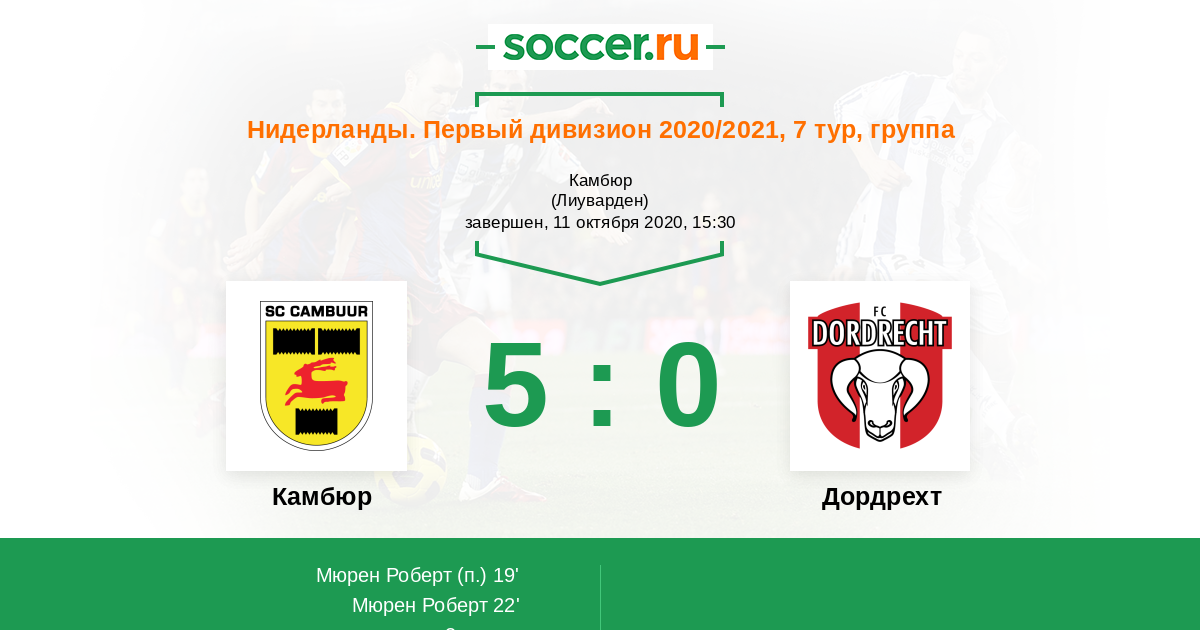 72' (4:0) Корте Джованни (11) (Худемакерс Меес (6))