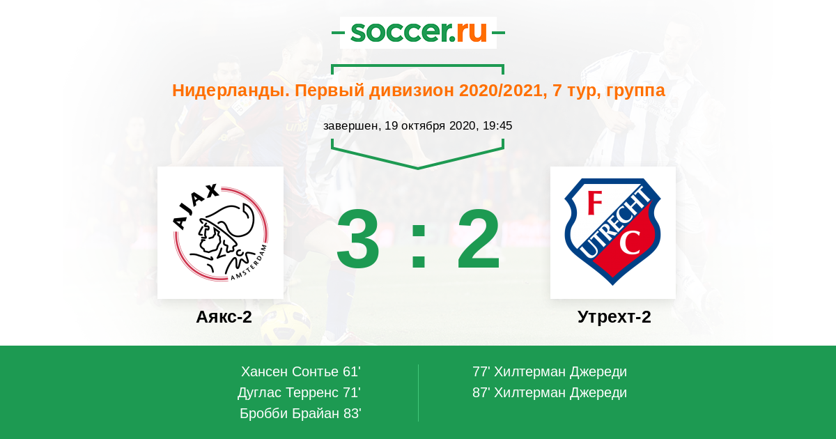 Протокол матча Аякс-2 против Утрехт-2