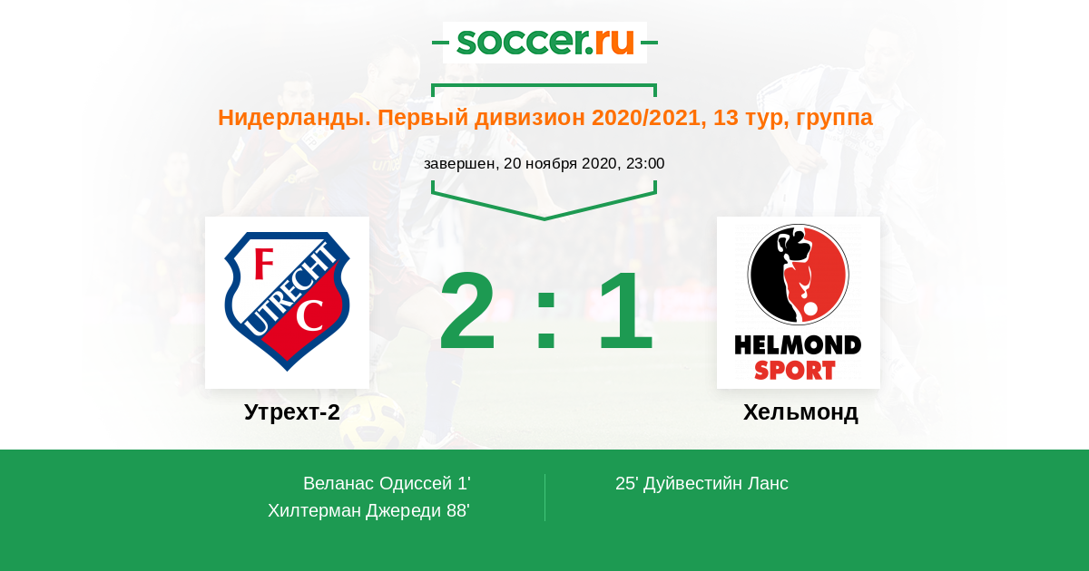 Протокол матча Утрехт-2 против Хельмонд