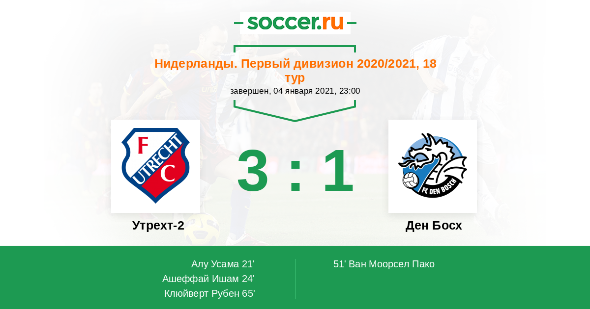 Протокол матча Утрехт-2 против Ден Босх
