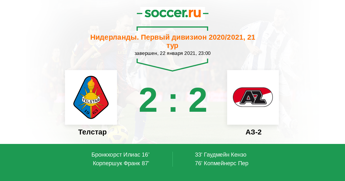 Протокол матча Телстар против АЗ-2
