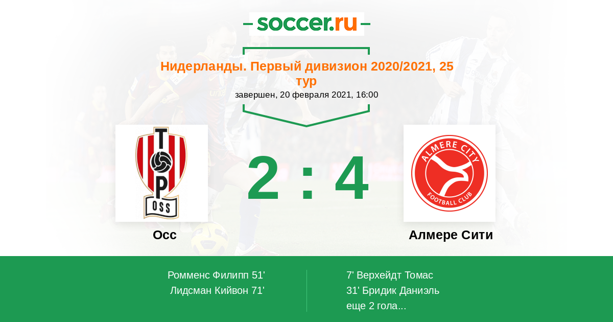 Протокол матча Осс против Алмере Сити