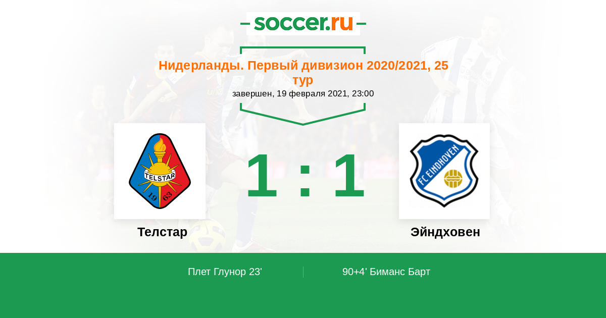 Протокол матча Телстар против Эйндховен