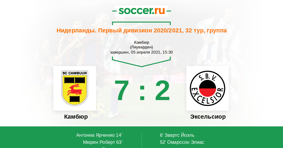 6' (0:1) Звартс Йоэль (11) (Хореманс Сиб (2))