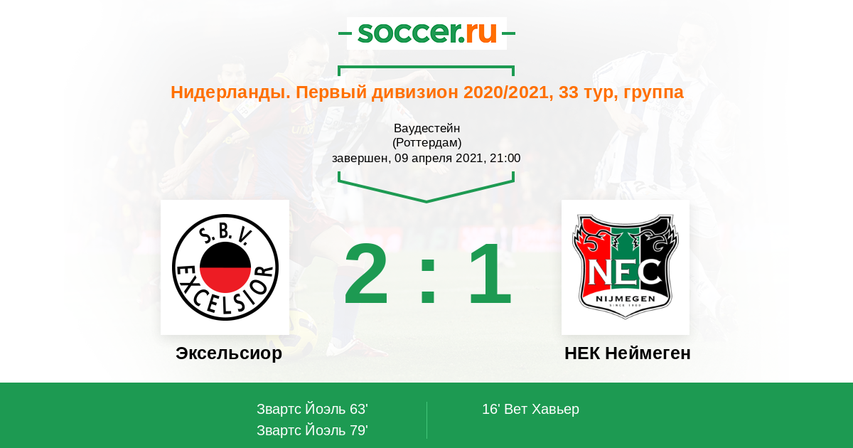 Протокол матча Эксельсиор против НЕК Неймеген