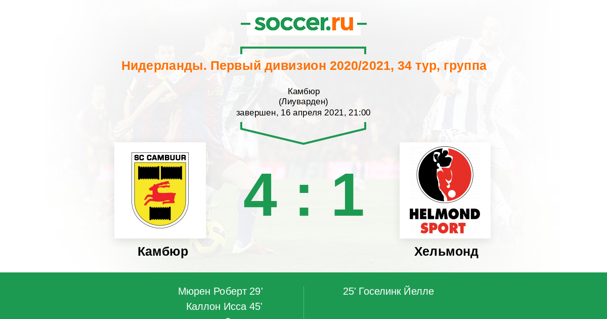 Протокол матча Камбюр против Хельмонд