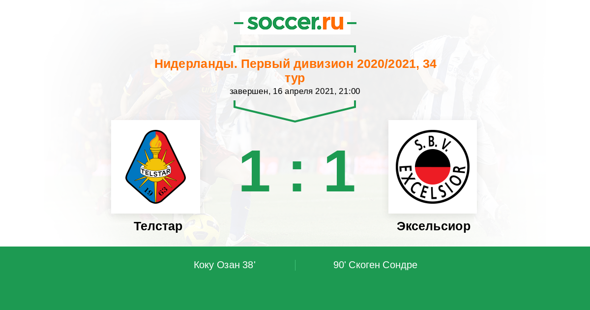 Протокол матча Телстар против Эксельсиор