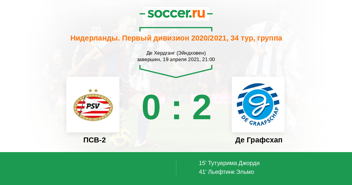Протокол матча ПСВ-2 против Де Графсхап