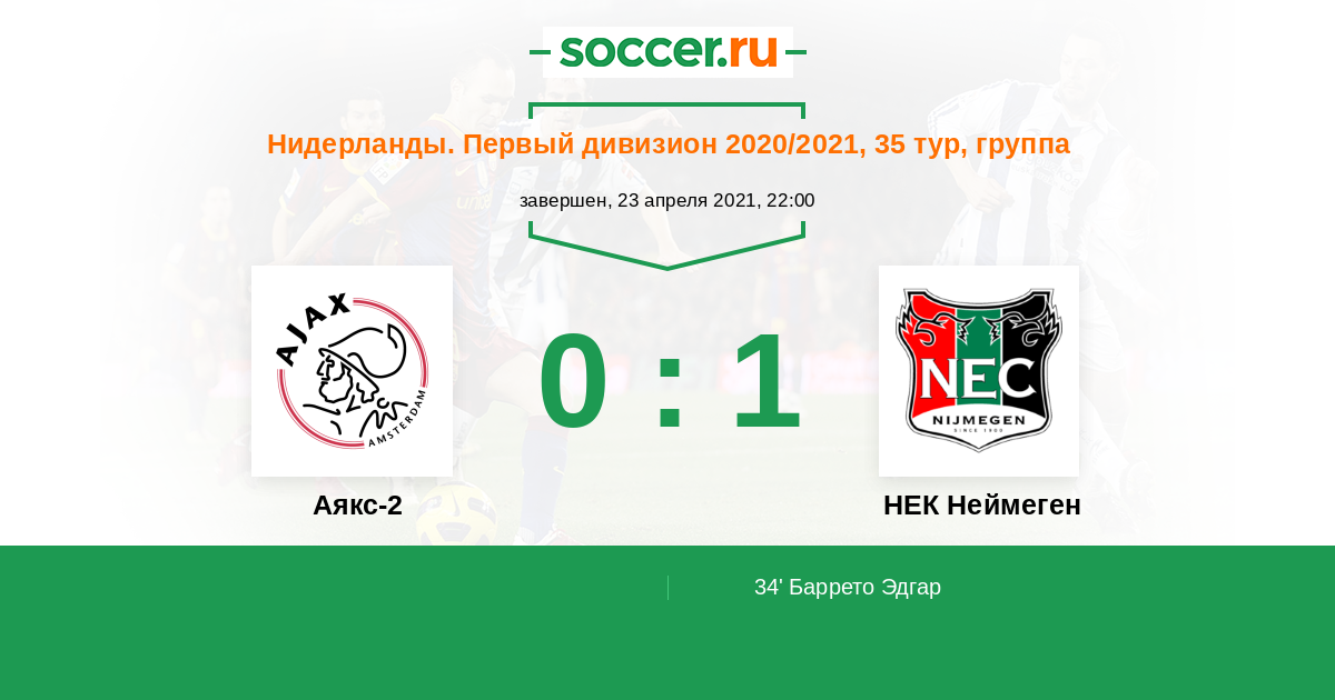 Протокол матча Аякс-2 против НЕК Неймеген