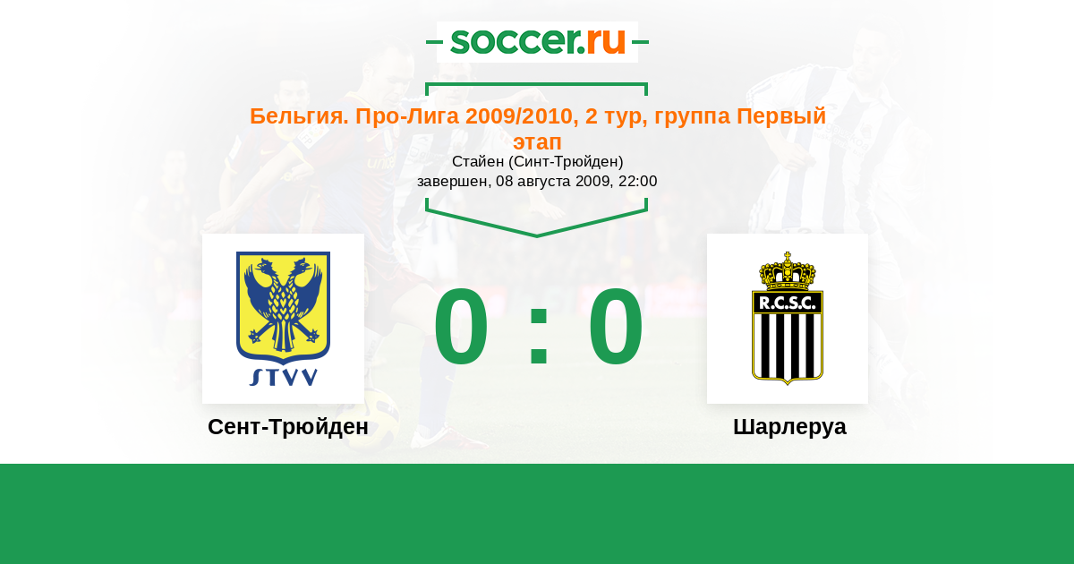 Бельгия. Про-Лига 05.12.2009 Шарлеруа Логотип футбольный клуб Шарлеруа 0:0 Логотип футбольный клуб Сент-Трюйден (Синт-Трёйден) Сент-Трюйден