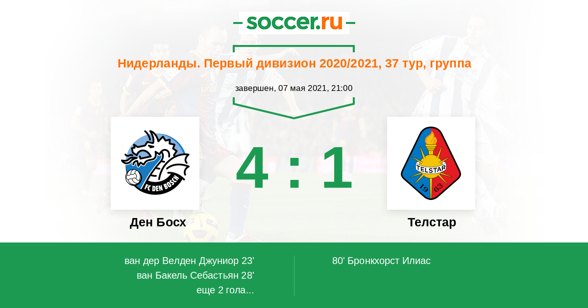23' (1:0) ван дер Велден Джуниор (4) (ван Хедель Йорн (32))