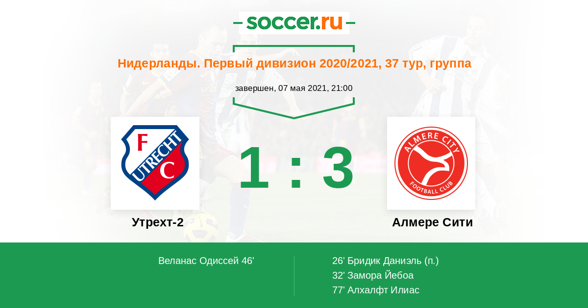 Протокол матча Утрехт-2 против Алмере Сити