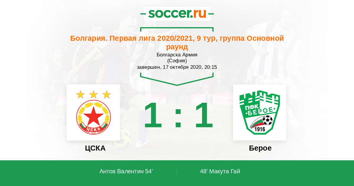 Протокол матча ЦСКА против Берое