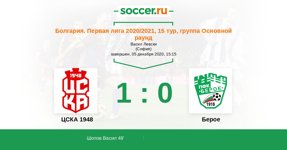 Протокол матча ЦСКА 1948 против Берое