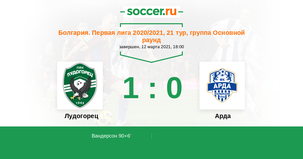 Протокол матча Лудогорец против Арда