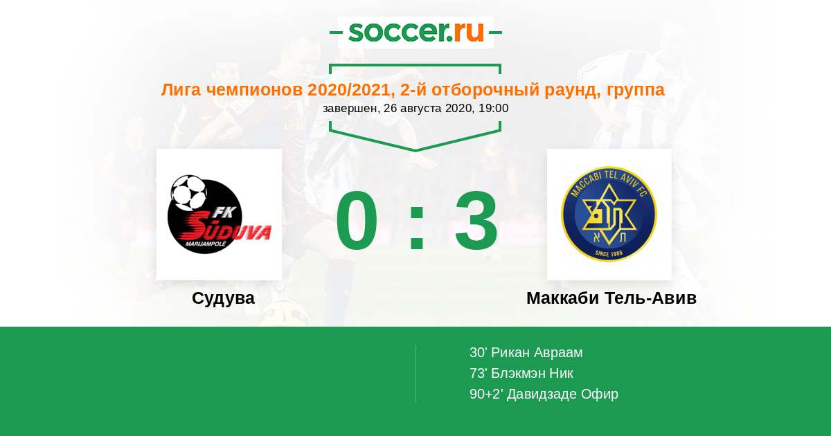Протокол матча Судува против Маккаби Тель-Авив