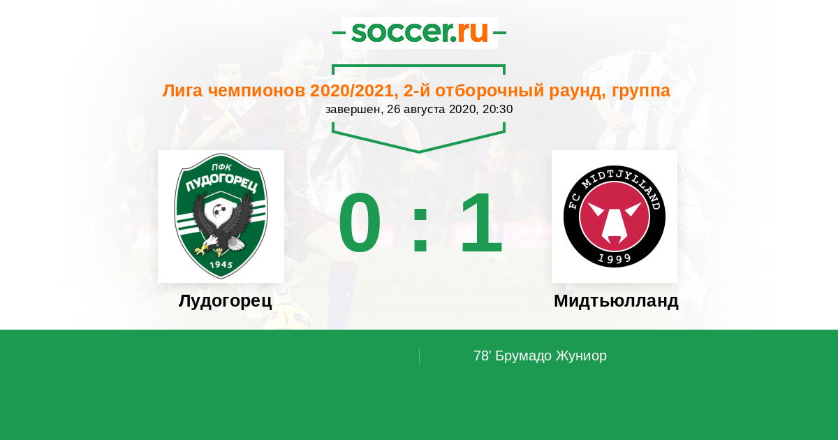 Протокол матча Лудогорец против Мидтьюлланд