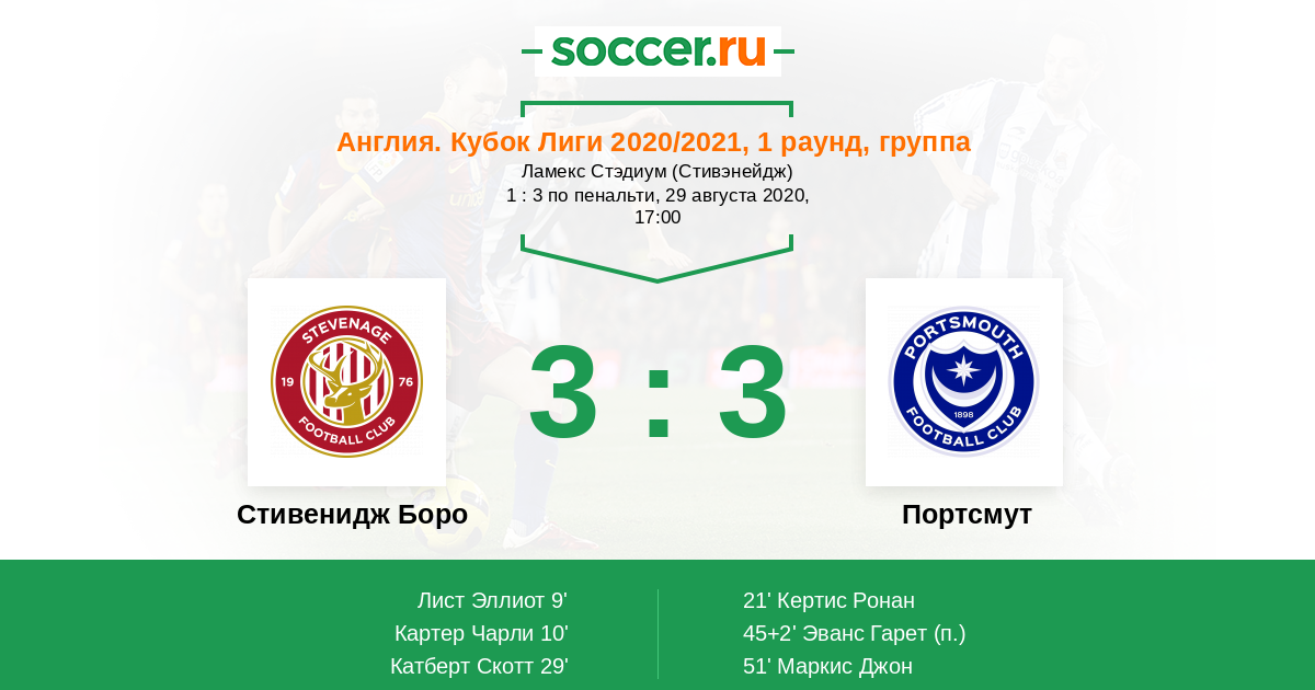 Протокол матча Стивенидж Боро против Портсмут