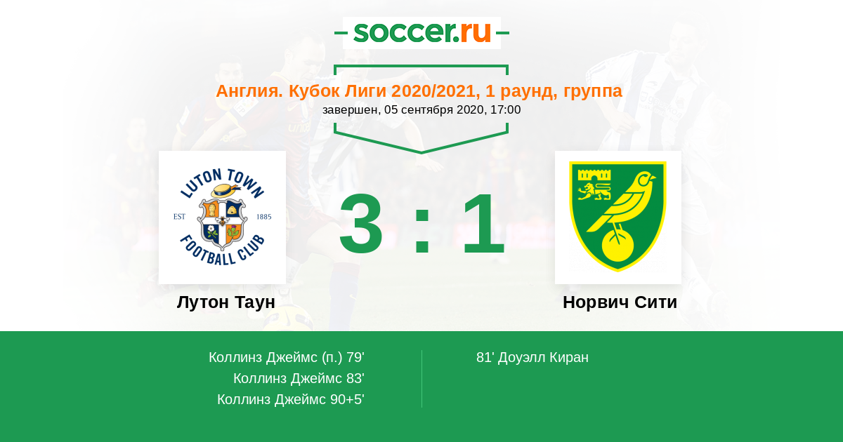 Протокол матча Лутон Таун против Норвич Сити