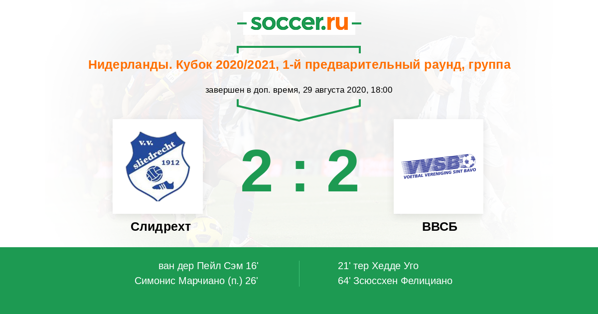 Протокол матча Слидрехт против ВВСБ