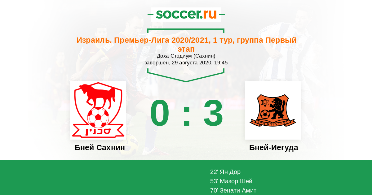 Протокол матча Бней Сахнин против Бней-Иегуда