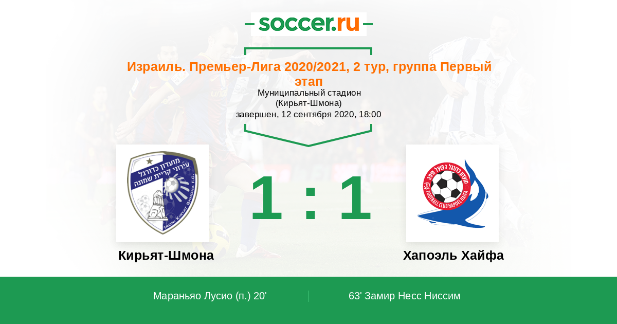 Протокол матча Кирьят-Шмона против Хапоэль Хайфа