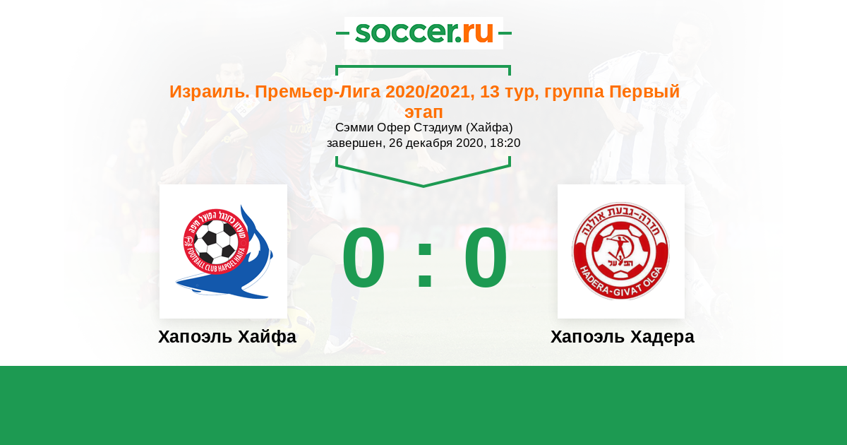 Протокол матча Хапоэль Хайфа против Хапоэль Хадера