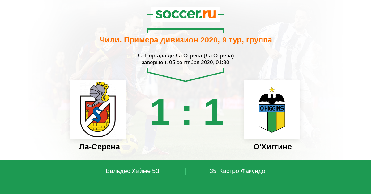 Протокол матча Ла-Серена против О'Хиггинс
