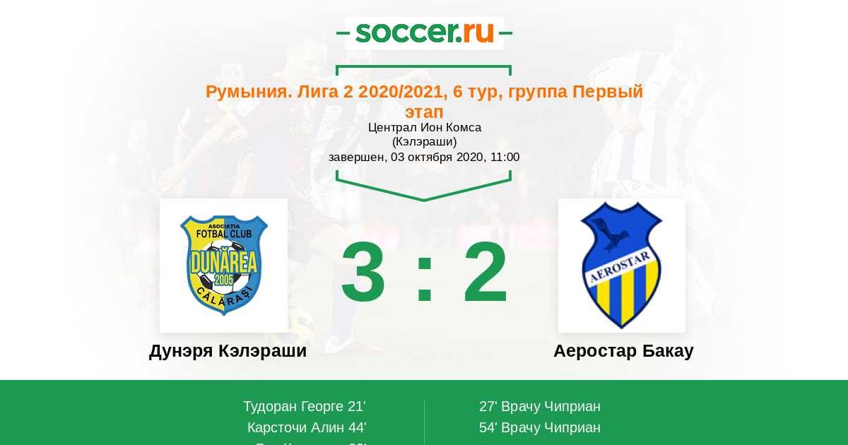 Протокол матча Дунэря Кэлэраши против Аеростар Бакау