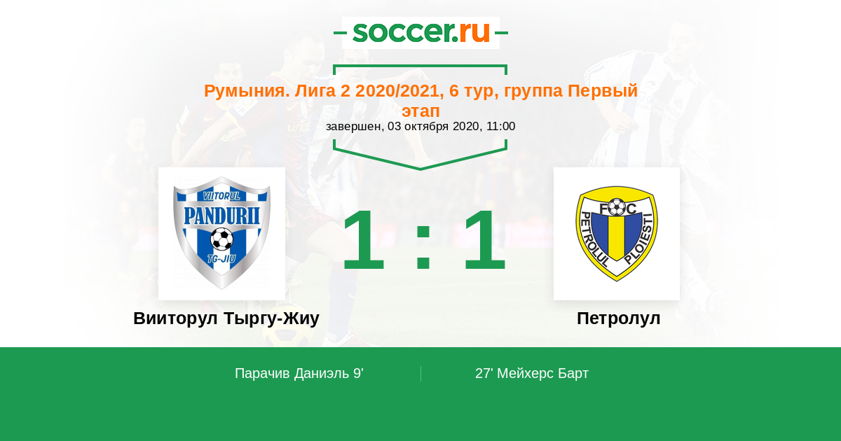 Протокол матча Вииторул Тыргу-Жиу против Петролул