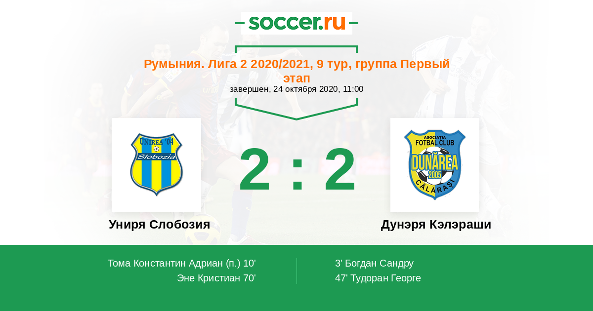 Протокол матча Униря Слобозия против Дунэря Кэлэраши