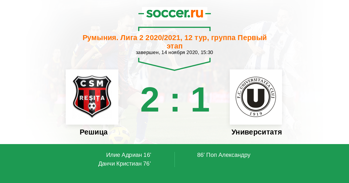 Протокол матча Решица против Университатя Клуж