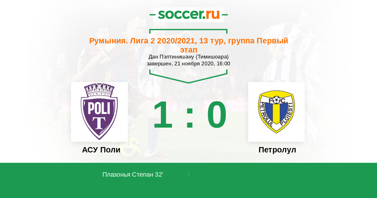 Протокол матча АСУ Поли против Петролул