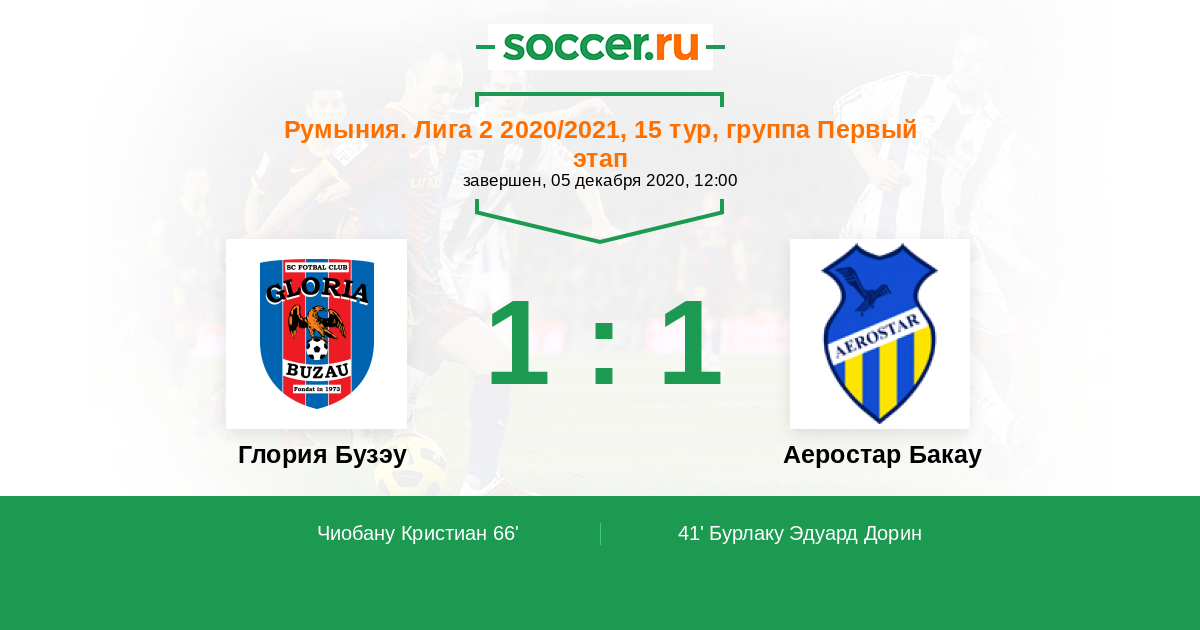 Протокол матча Глория Бузау против Аеростар Бакау