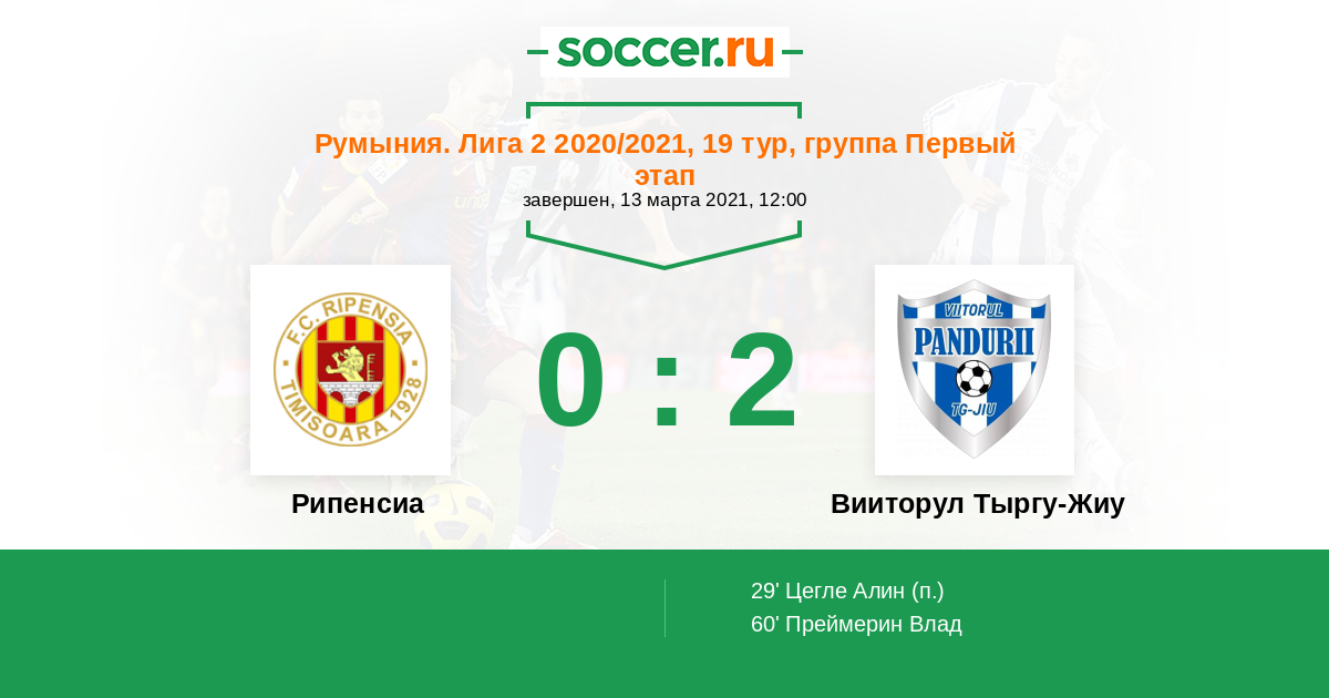 Протокол матча Рипенсиа против Вииторул Тыргу-Жиу