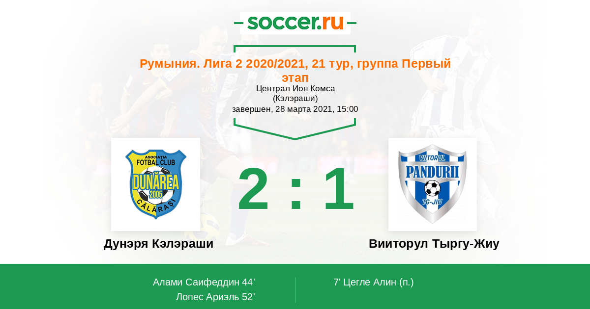 Протокол матча Дунэря Кэлэраши против Вииторул Тыргу-Жиу