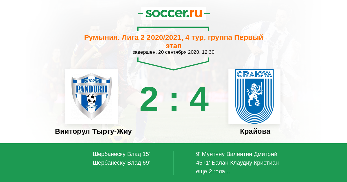 Протокол матча Вииторул Тыргу-Жиу против Крайова