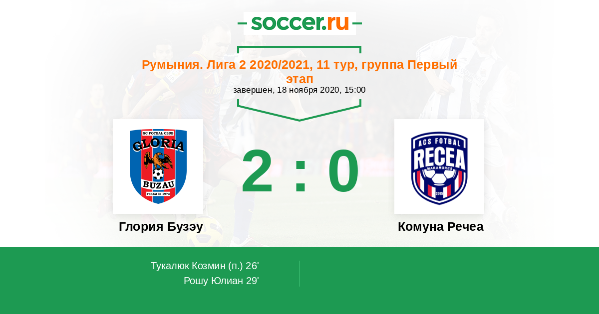 Протокол матча Глория Бузау против Комуна Речеа