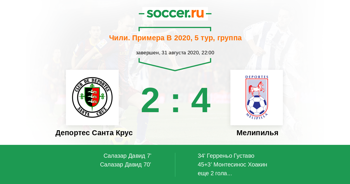 Протокол матча Депортес Санта Крус против Мелипилья