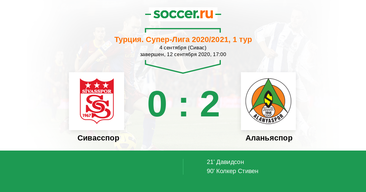 21' (0:1) Давидсон (91) (Караджа Эфеджан (7))