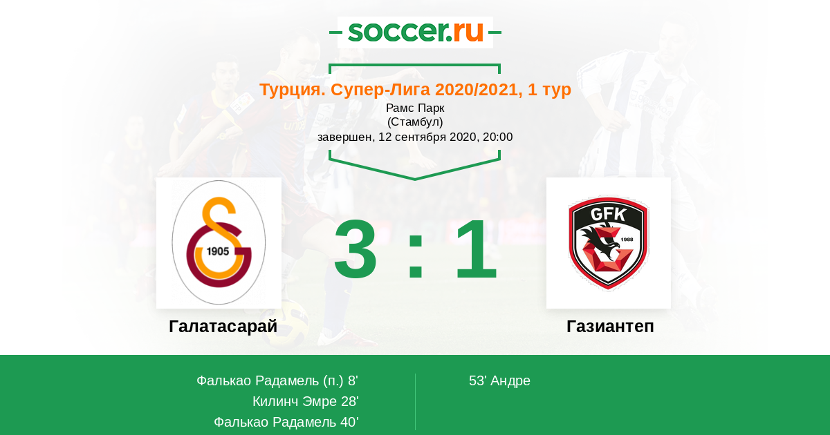 Протокол матча Галатасарай против Газиантеп