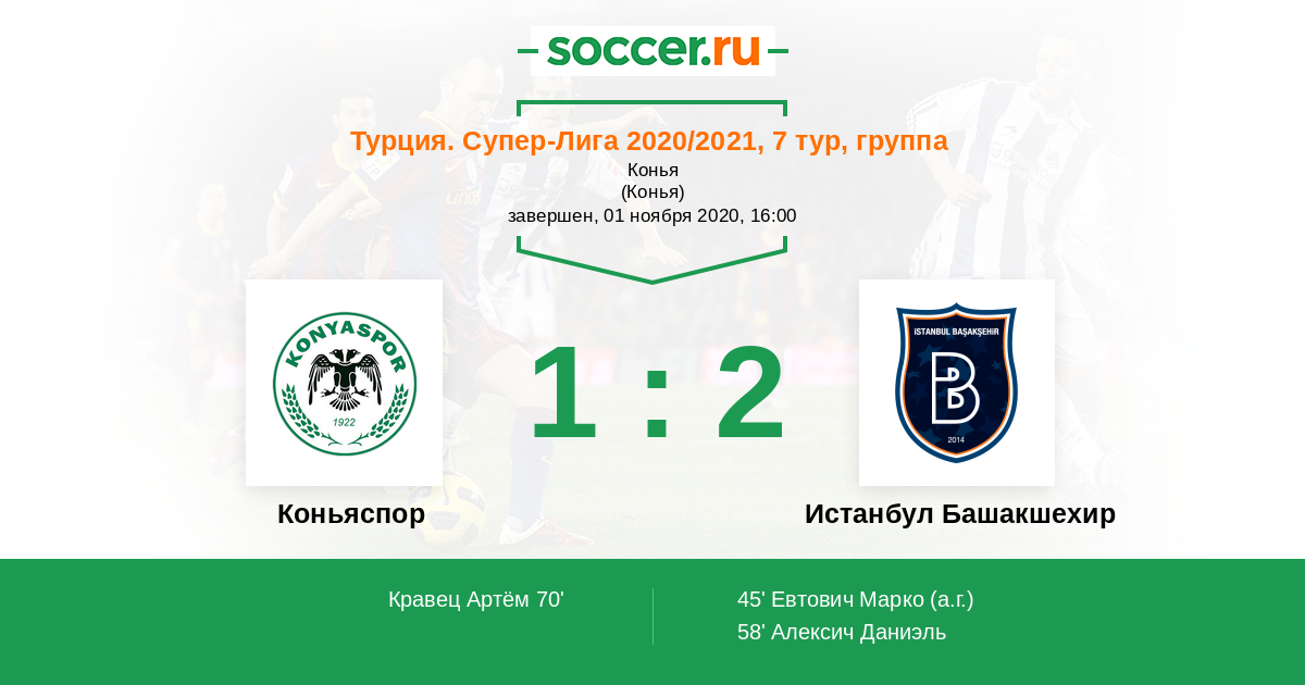 Протокол матча Коньяспор против Истанбул Башакшехир