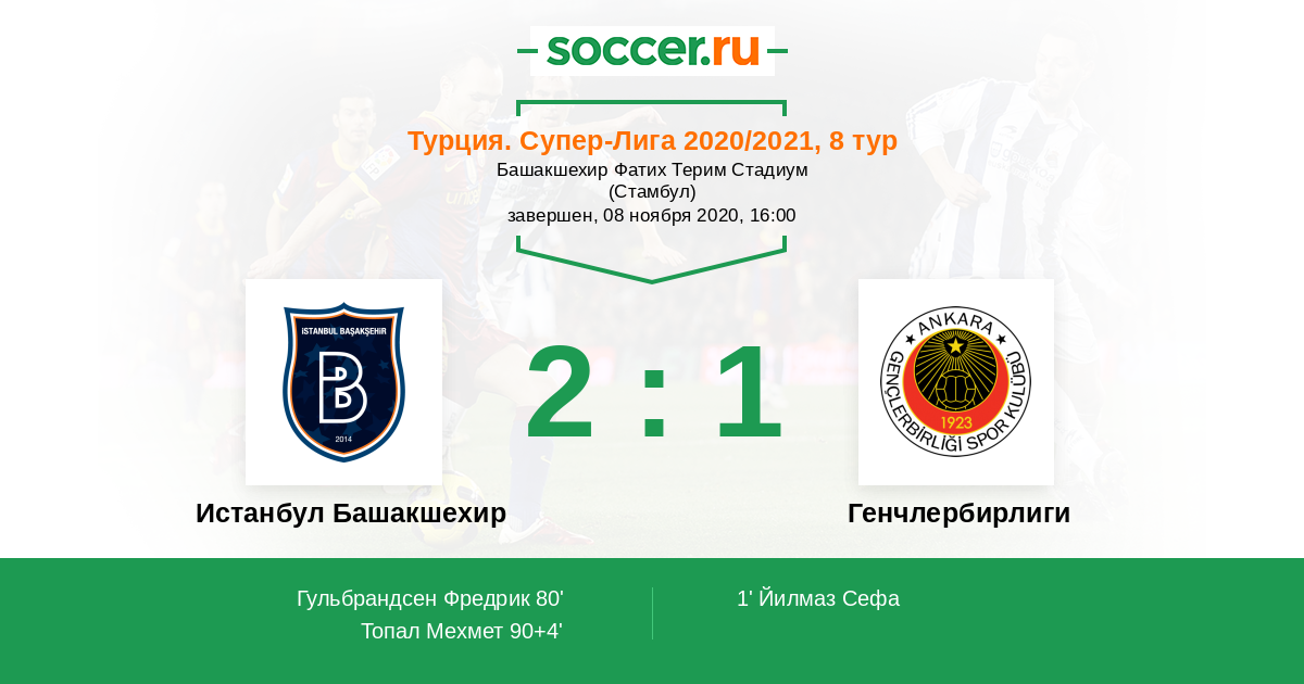 Протокол матча Истанбул Башакшехир против Генчлербирлиги