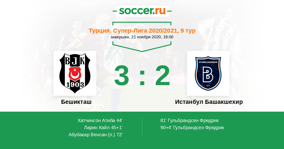 Протокол матча Бешикташ против Истанбул Башакшехир