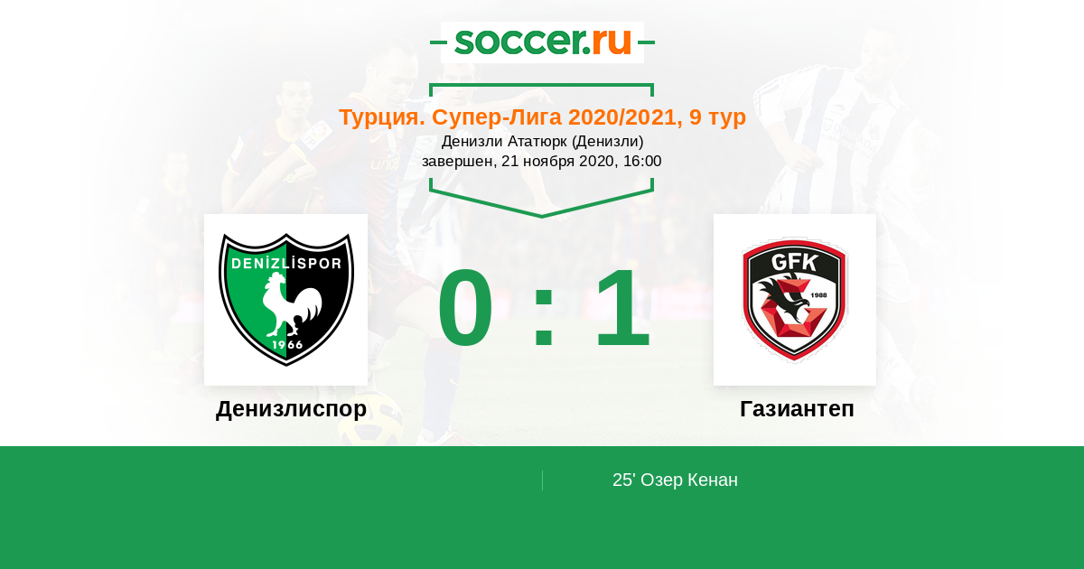 Протокол матча Денизлиспор против Газиантеп