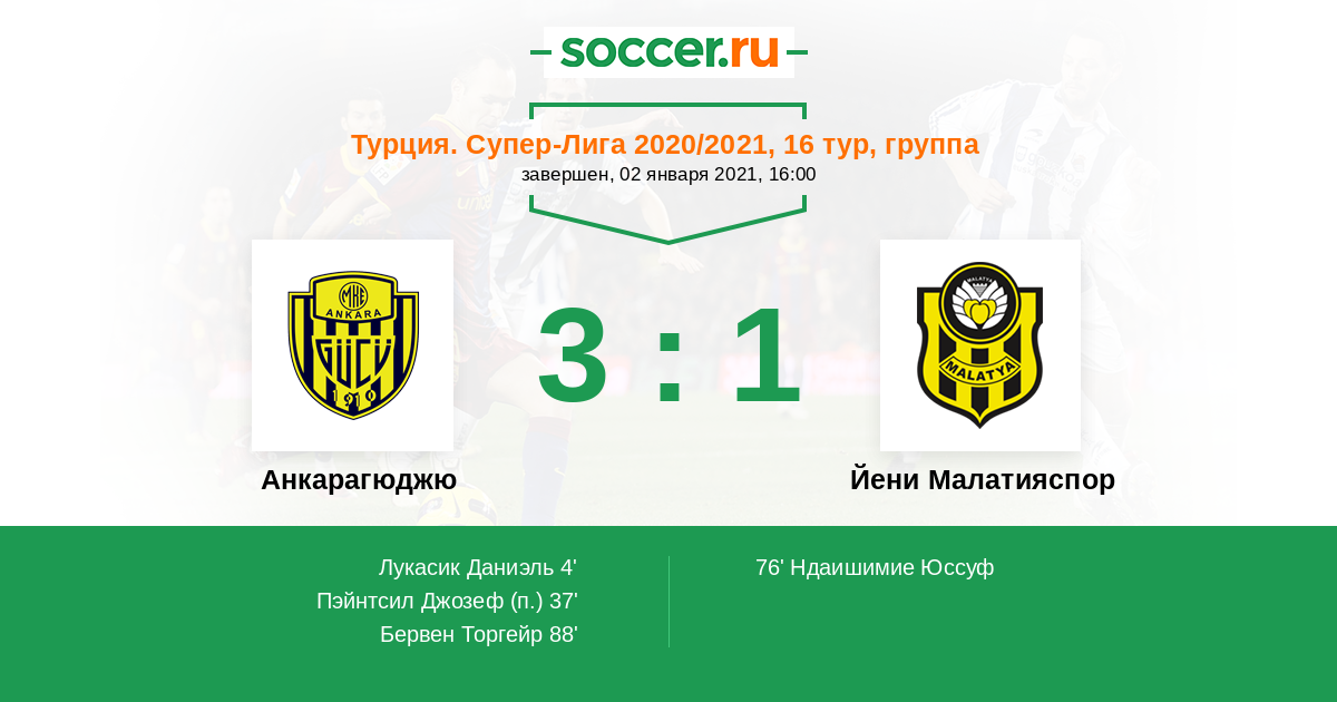 Протокол матча Анкарагюджю против Йени Малатияспор