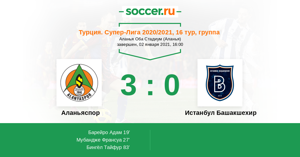 Протокол матча Аланьяспор против Истанбул Башакшехир