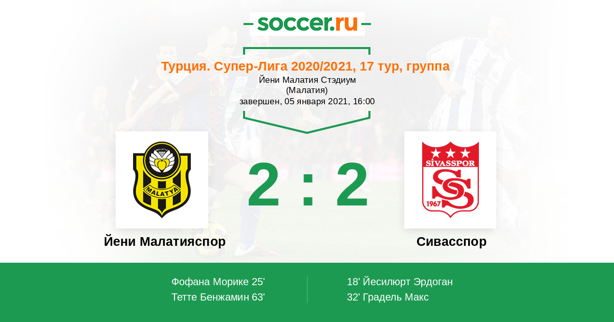 Протокол матча Йени Малатияспор против Сивасспор